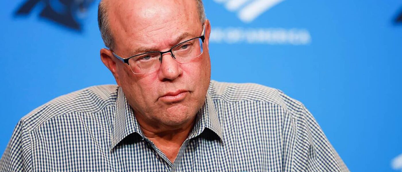 Carolina Panthers owner David Tepper listens to a question during a press conference in 2022.