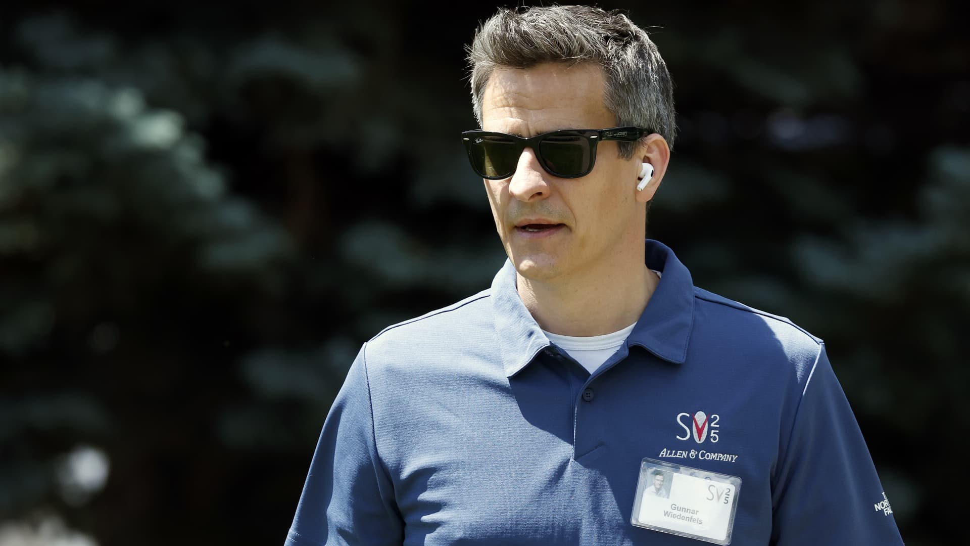 Warner Bros. Discovery Chief Financial Officer Gunnar Wiedenfels walks to a session at the Allen & Company Sun Valley Conference on July 9, 2025 in Sun Valley, Idaho.