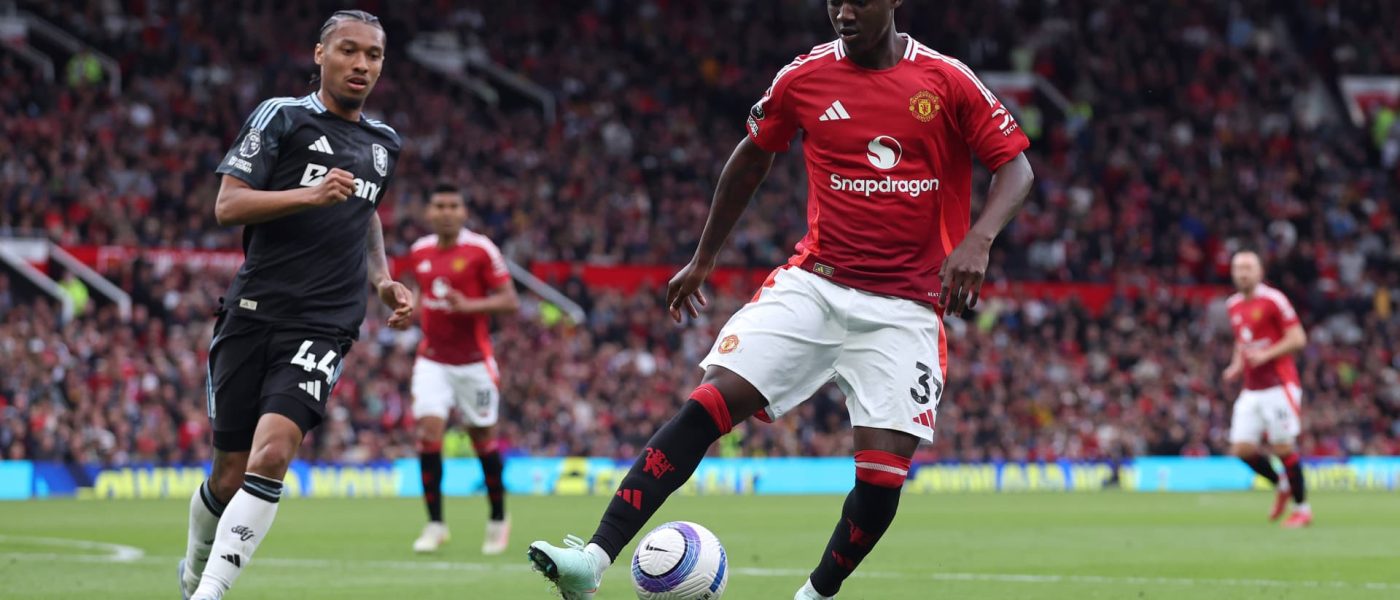 Kobbie Mainoo of Manchester United during the Premier League match between Manchester United FC and Aston Villa FC at Old Trafford on May 25, 2025 in Manchester, England.