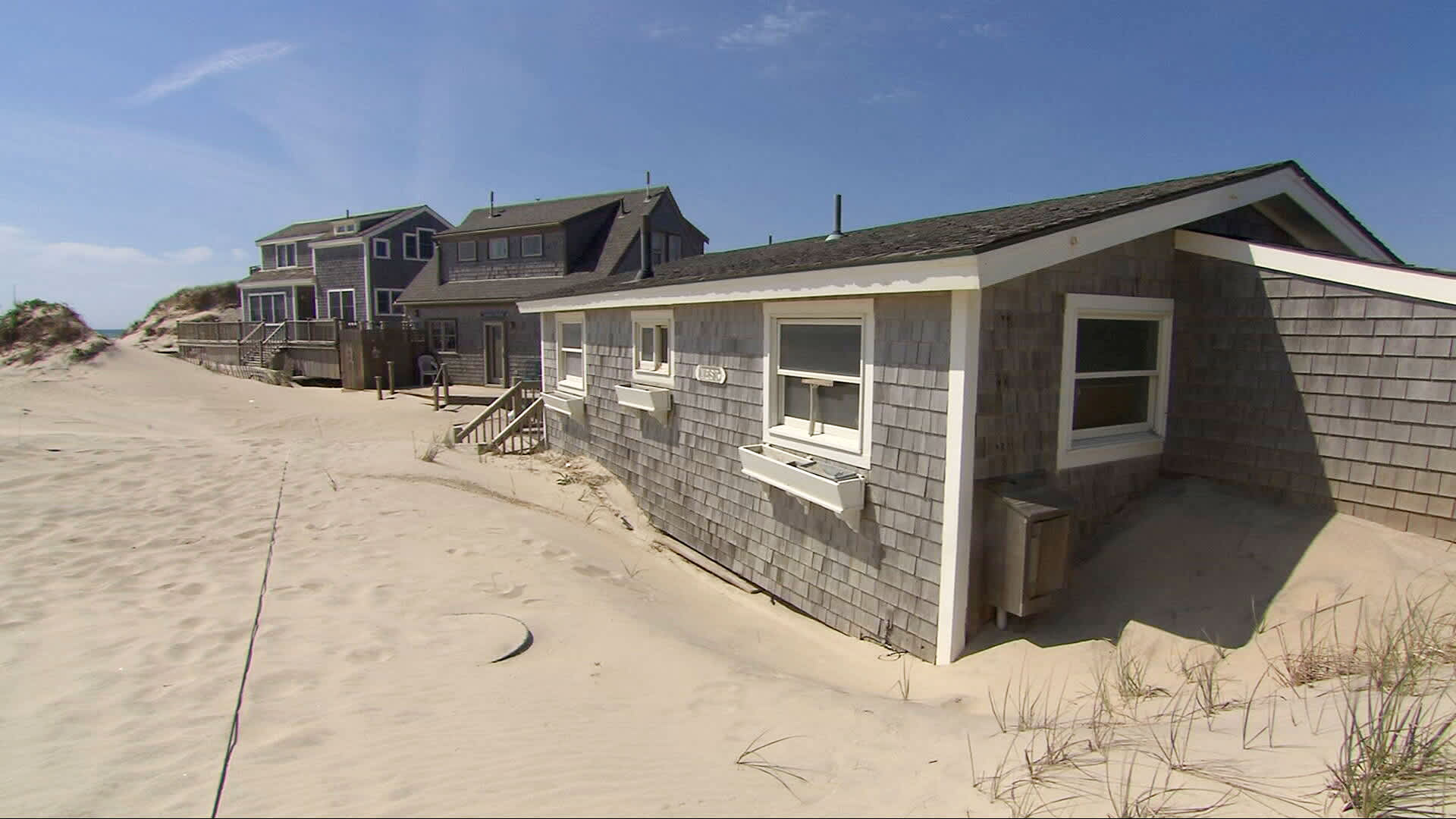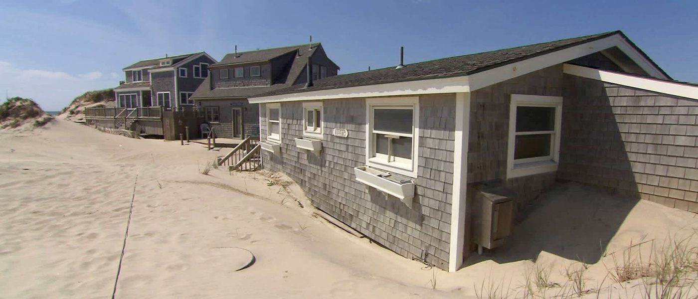 On another Nantucket beach, the rising ocean has pushed sand so far that it’s burying homes. Sand covered two homes up to the windows and uncovered the septic system and utility wires. Once those are exposed, the town has to condemn the property, according to Lockwood.