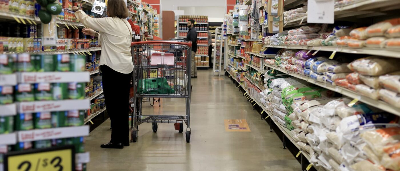 A man walks at a supermarket in Houston, Texas, on March 17, 2026.