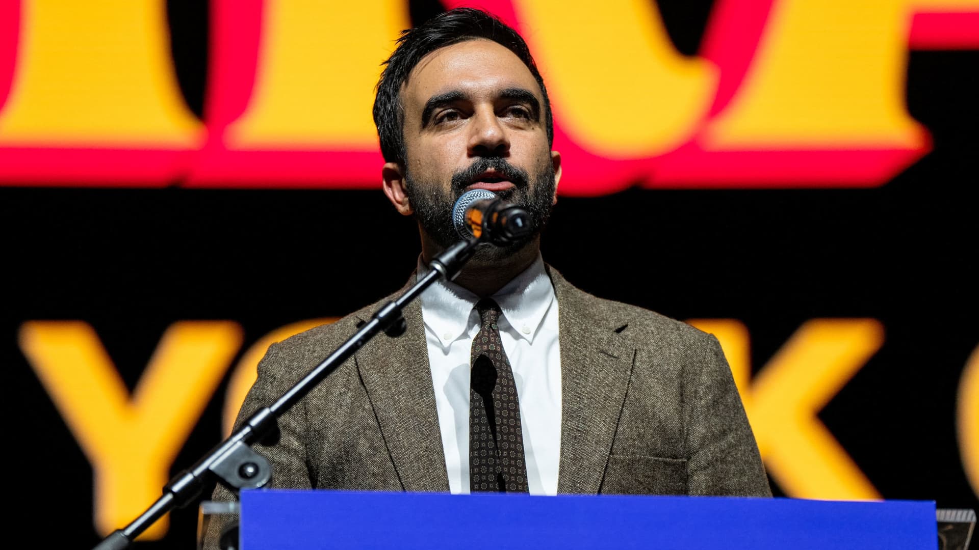 Democratic candidate for New York City Mayor Zohran Mamdani speaks at a campaign rally in the Manhattan borough of New York City, U.S., October 13, 2025.