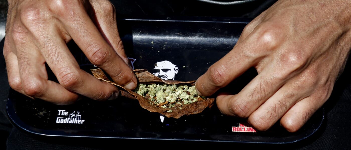 A man prepares a marijuana cigarette at Washington Square Park on April 20, 2023 in New York City.Â