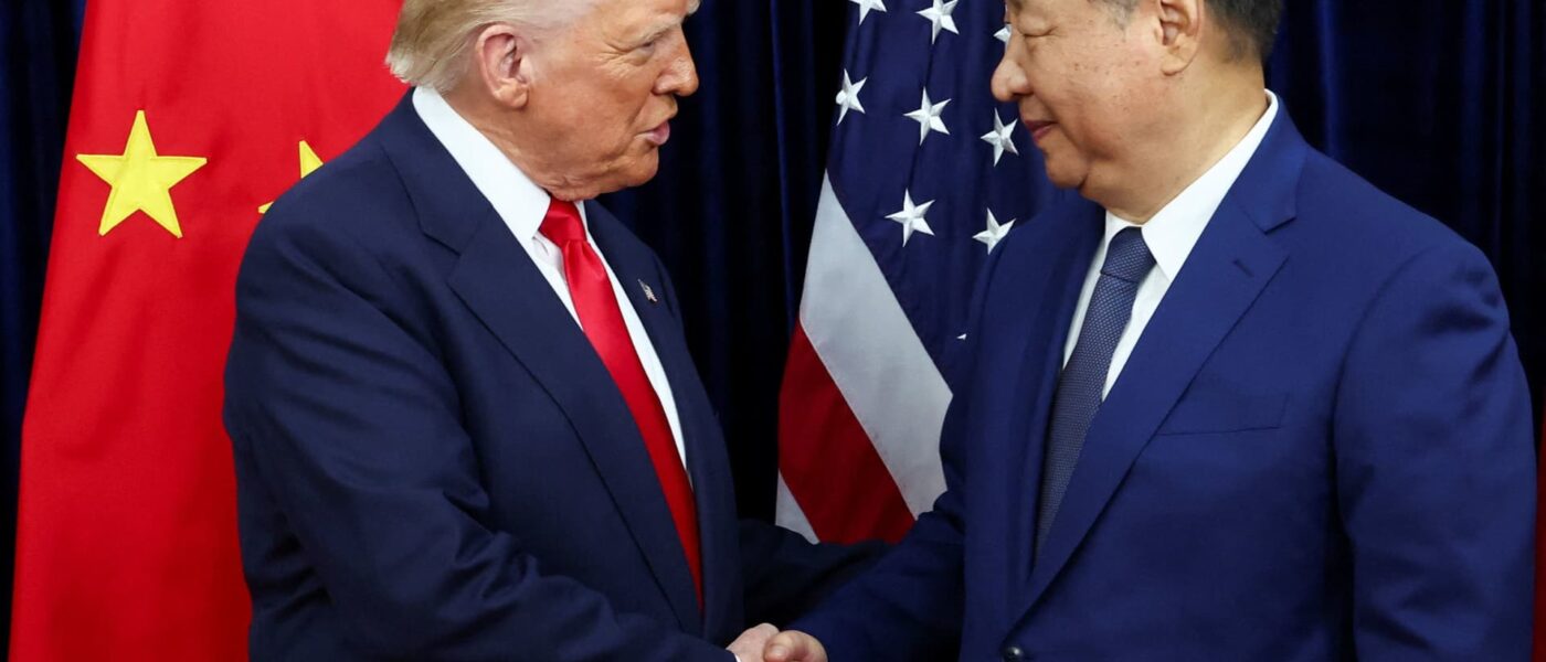 U.S. President Donald Trump shakes hands with Chinese President Xi Jinping as they hold a bilateral meeting at Gimhae International Airport, on the sidelines of the Asia-Pacific Economic Cooperation (APEC) summit, in Busan, South Korea, October 30, 2025.