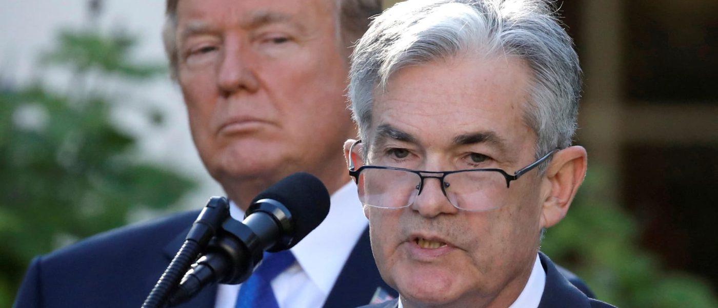 U.S. President Donald Trump looks on as Fed Chair Jerome Powell speaks at the White House in Washington on Nov. 2, 2017.
